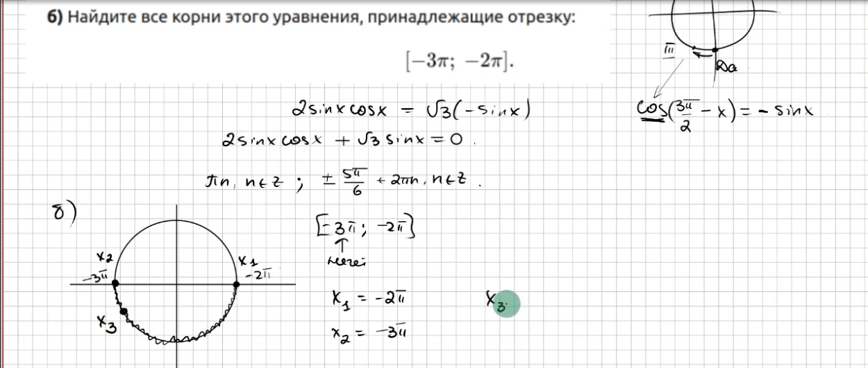 - определить, какие из найденных решений попадают в отрезок [–3π; –2π];